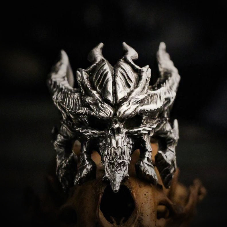 Vintage Knuckle Ring Demon Diablo Ring Open Adjustable Black Punk Gothic Ring Role Play Accessories