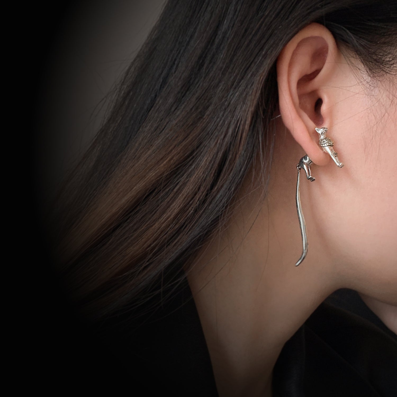 Vintage Shadow Stud Earrings, Hypoallergenic Stainless Steel Egyptian Pharaoh Cat Earrings